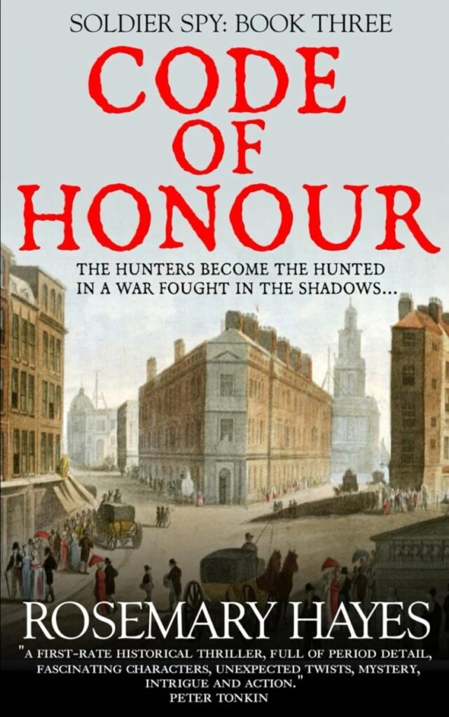 ‘Rosemary Hayes’ Soldier Spy is a first-rate historical thriller, full of period detail, fascinating characters, unexpected twists, mystery, intrigue and action. It reminds me of Berrnard Cornwell’s brilliant, Regency-set Gallows Thief. I am pleased to see that it is the first of a trilogy and look forward to reading more about the dashing Will Fraser.’
