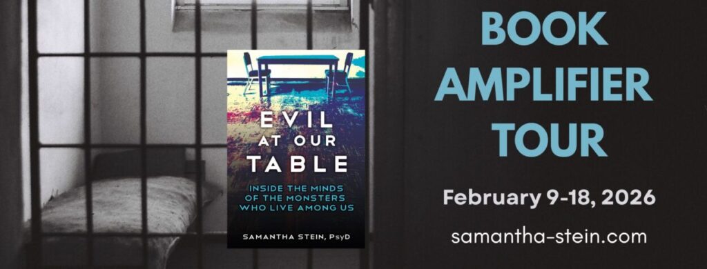 Evil at Our Table by Samantha Stein, PsyD offers a rare, firsthand look at how some of the most difficult decisions in the justice system are made. Told from inside the prison interview room, the story follows the work of a forensic psychologist tasked with evaluating individuals charged with extreme sexual crimes.