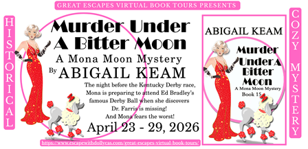 Murder Under a Bitter Moon book tour is through Great Escapes Virtual Book Tours and includes a giveaway for a free copy of the book. Enter below, share, follow, comment.