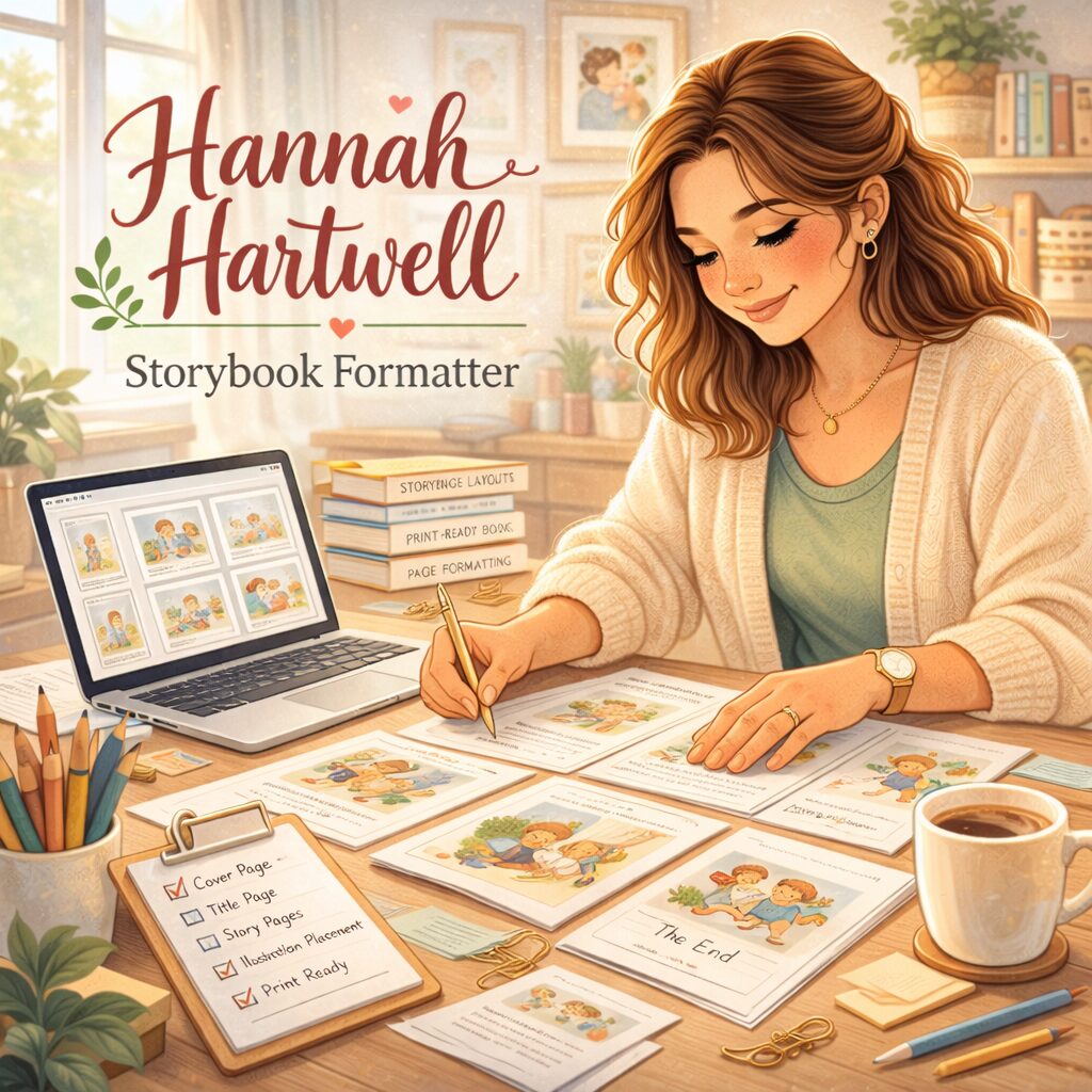 Hannah Hartwell is a children’s book formatting GPT that takes your story and organizes it into a structured, print-ready layout.