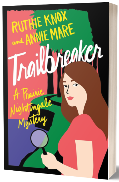 Ruthie Knox and Annie Mare write critically acclaimed, bestselling mystery and romance, usually (but not always) together. They are the authors of the Prairie Nightingale mysteries and the TV Detectives mystery series. If you want more of their stories, check out their queer romances co-written as Mae Marvel, as well as solo work by Ruthie Knox (het romance), Annie Mare (grounded queer paranormal romance), and Robin York (Ruthie’s pen name for New Adult romance). Ruthie and Annie are married and live with two teenagers, two dogs, multiple fish, two glorious cats, four hermit crabs, and a bazillion plants in a very old house with a garden.